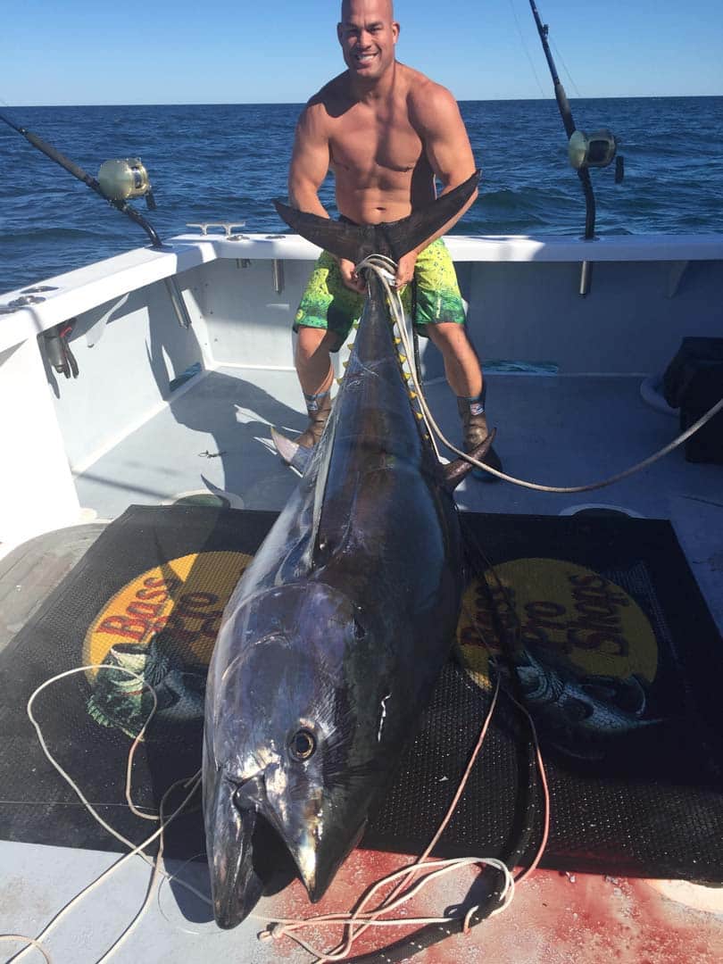 Another of Ortiz’ current passions looks to combine show business with fishing in a new TV show, tentatively called “Sea Monsters with Tito Ortiz.” The outdoor adventure program, which Ortiz says a production company is “exploring,” would send him to a variety of global locales to try to land the biggest fish in that area. One show might find him in the Great Barrier Reef, for example, where he would aim to catch the largest giant black marlin. Another might have him in Alaska, fishing for the biggest halibut, or angling for a huge kingfish off New Zealand. “If I’ve got a good skipper,” Ortiz says, “I can adapt and catch these fish.”