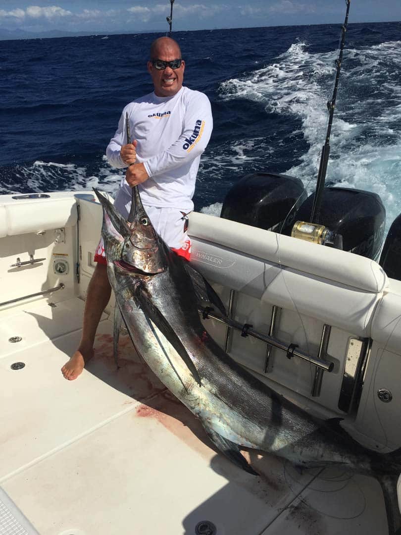 There’s no doubt, he’s more than proficient with a rod and reel. Several years ago, for instance, Ortiz participated in the very serious, very competitive Bisbee’s Black & Blue Marlin Tournament, which takes place every October in the Los Cabos region of Mexico’s Baja Peninsula. The Black & Blue, one of three fishing tournaments produced by Bisbee’s each year, has grown over nearly four decades from just a few participating teams and a $10,000 purse to more than 150 teams, with purses in the multimillion-dollar range. In 2006, the Bisbee’s Black & Blue boasted an overall cash payout of $4.16 million—the biggest payout in sport-fishing history.