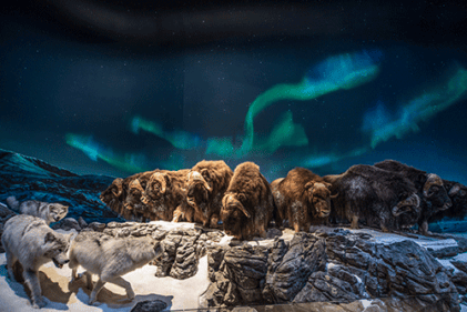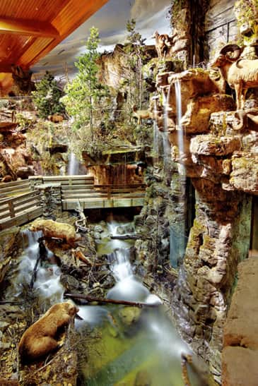 In the wildlife galleries, a walkway winds through a journey around the world through immersive displays that bring visitors eye-to-eye with the greatest collection of record-setting game animals ever assembled. Patrons can explore a gallery dedicated to birds, an area filled with dozens of world-record whitetail deer mounts, an African area complete with elephants and giraffes, and more. Every detail is complete from the temperature of the room, set to match the habitat it represents, to scents that represent the nearby terrain.