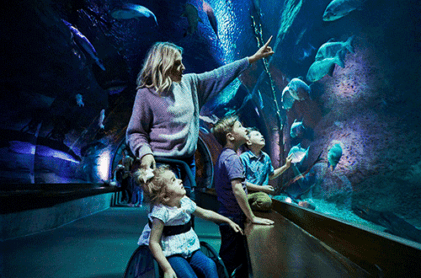 Wonders of Wildlife offers up-close wildlife experiences, including the Penguin Encounter that puts guests “face-to-feather” inside the gentoo penguin enclosure and the Out to Sea Feeding Frenzy and Shark Dive, where guests slip beneath the waves inside the underwater shark tank.
