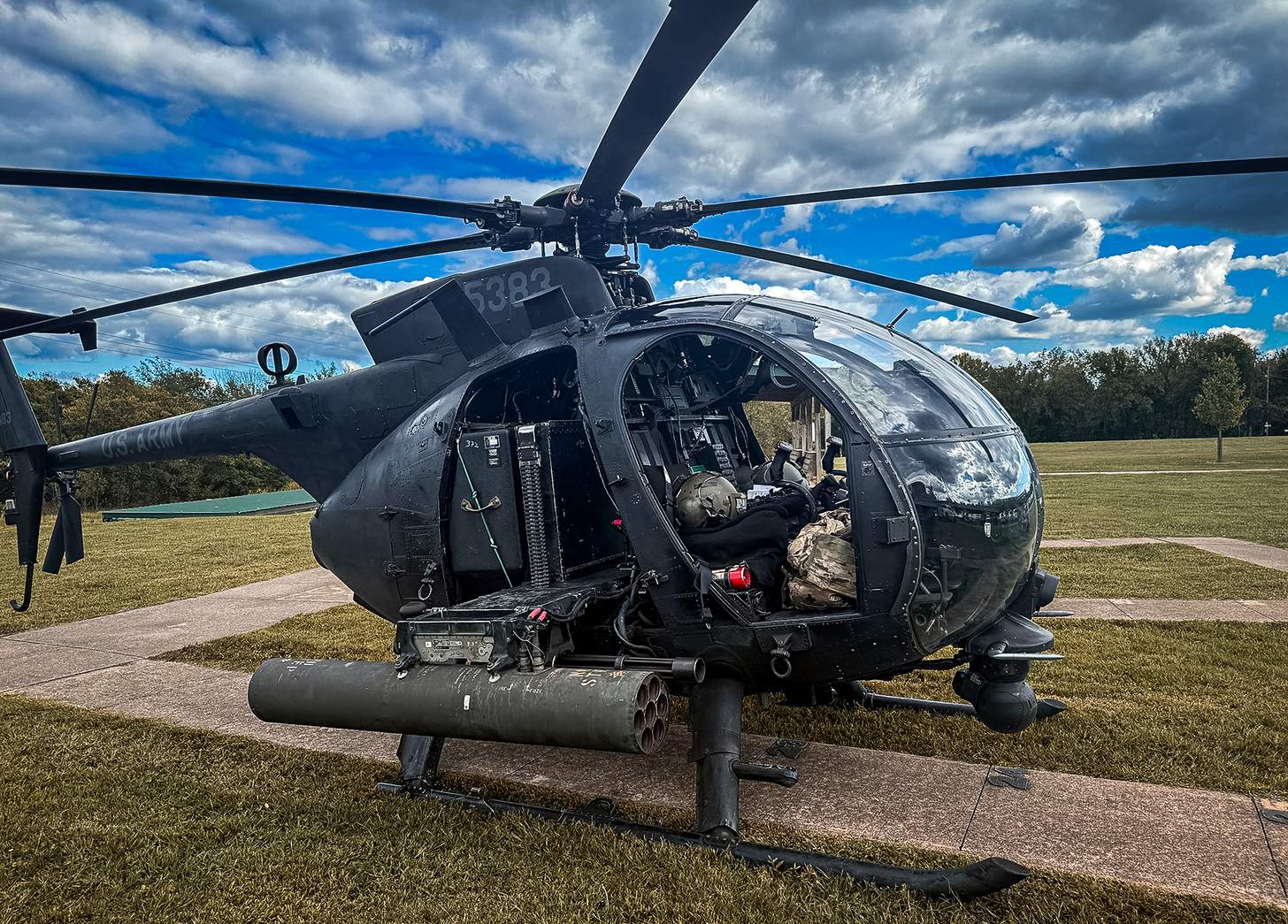 The 18 shooting stations on the course were set up for the day and outfitted with Fiocchi shotgun ammo. Military Black Hawk helicopters (Sikorsky UH-60s) from Fort Campbell flew before skydivers graced the blue heavens with the American Flags flying for all to see. Lunch was provided for all by the The Beached Pig, which is quite famous here in central Tennessee.