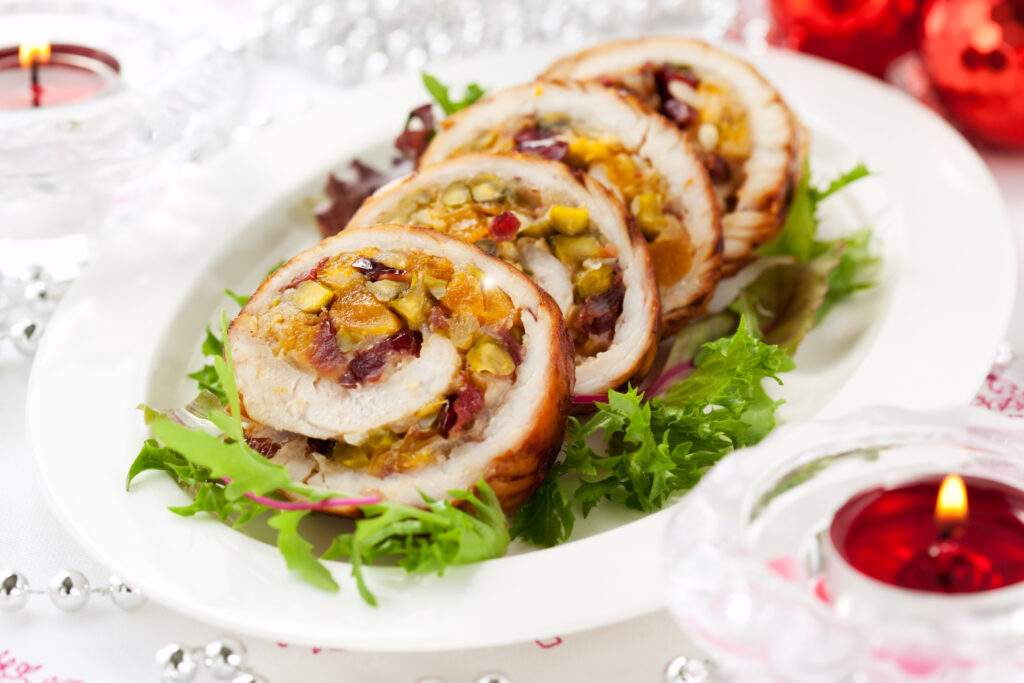 Starting with the longer side, roll the turkey breast to form a roulade and truss with food-grade twine.
