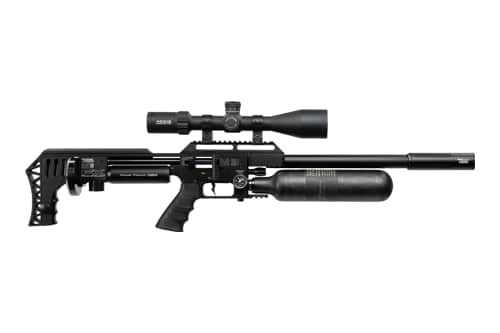 AirMaks Arms is a fairly newcomer to the U.S. market, but since their arrival, these innovative air rifles have quickly become favorites among airgun die-hards. Imported exclusively through Utah Airguns, who are known for being trendsetters in the airgun world, the AirMaks Katran is a lightweight, do-all air rifle available with a handful of barrel length options, air reservoir sizes, and caliber choices available to shooters. Taking customization to an even deeper level, the Katran can be ordered through the Utah Airguns Custom Shop with nearly limitless variety when it comes to custom touches like Cerakote, hydro dipping, or accessories. The Katran is not all just good looks, this rifle's heart is a fully regulated design and a CZ barrel, yup, the same CZ that makes some of the most accurate factory rimfire rifles on the market. The Katran’s magazine features an innovative built-in anti-double feed mechanism ensuring that shooters don't accidentally double load pellets into the breach when cycling the rifle. Combine those innovative features with a lightweight aluminum chassis, a folding stock, ambidextrous charging handle, and a fantastic trigger, and the Katran is a winner for everything from plinking to varmint hunting right out of the box.