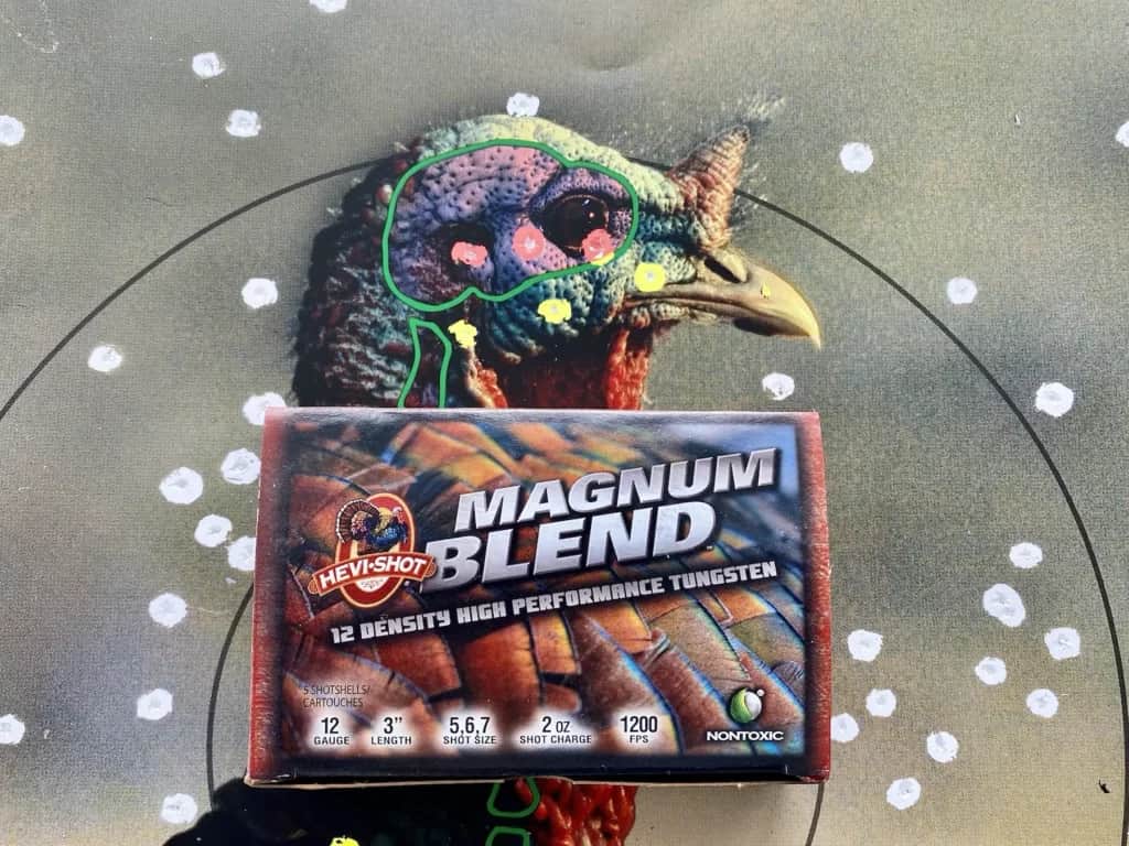 HEVI-18 Turkey is a 3.0-inch shell packed with a two-ounce load of #9 pellets made from super-dense tungsten alloy; Magnum Blend is also a 3.0-inch shell, but inside holds a two-ounce mixture of #5, #6 and #7 tungsten pellets.