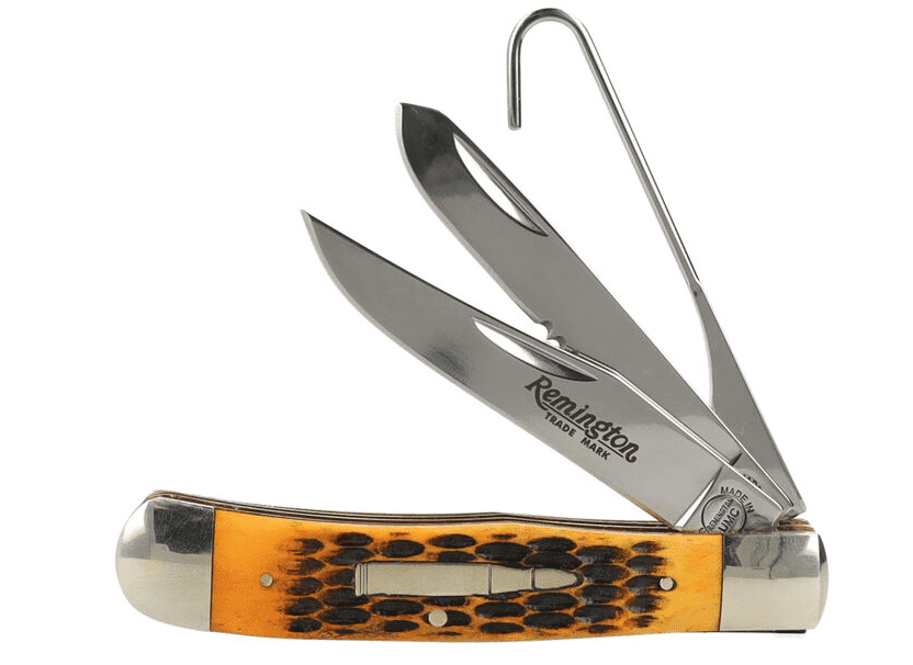 The Waterfowler edition — proudly made in the USA — offers up three tools to help duck hunters in the field. Each knife boasts a 1095 Carbon Steel Clip point blade, a long spey partially serrated blade, a birding gut hook, and the famous nickel silver bullet shield inlaid in a genuine jigged bone handle.