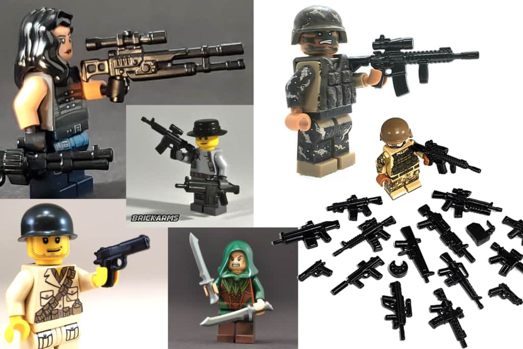 First, go here to Brick Arms. Once you arrive, you’ll find a vast collection of LEGO-ready weapons and accessories, weapons packs, and custom minifigs that are prized by collectors worldwide. For the best value, check out Brick Arms weapon theme packs.