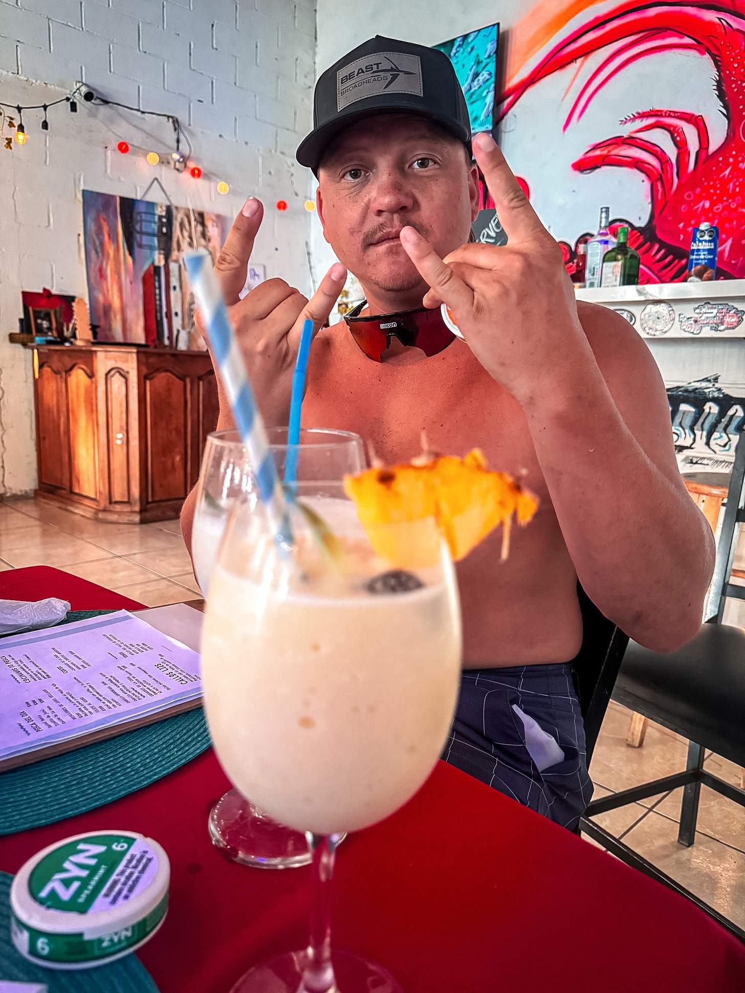 We brought a cooler full of food from the States, enough for breakfast and lunch on the boat: protein bars, jerky, sandwiches, and snack food that wouldn’t melt in the heat. Between that and the day’s catch, we ate light during the grind and saved our appetites for one proper meal each night at Liz’s Restaurant. Fresh surf and turf, hot tortillas, and ice-cold drinks served with a smile and zero pretense. By the second night, the staff knew us by name.