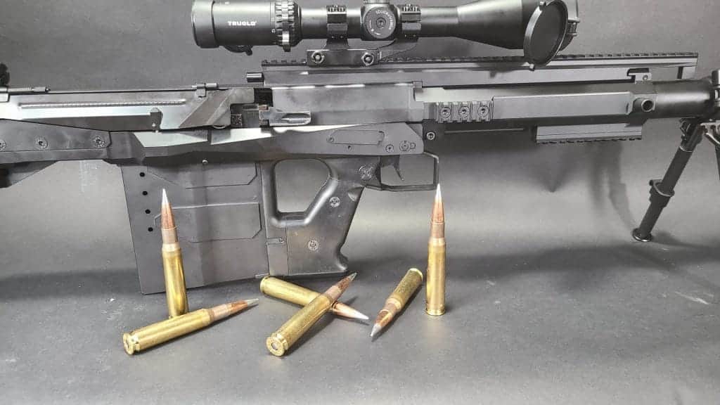 Our last .50 BMG rifle is more unique. The GM6 Lynx is a unique, multi-purpose rifle that combines the strengths of sniper rifles, combat rifles, and anti-material weapons. The manufacturer states “Its task is to destroy the enemies’ key pinpoint targets, armored rifle troops in vehicles, light shelters, and buildings, radio-electronic construction, missile launchers up to 2000+ meters distance and hovering helicopters within a 600- to 800-meter shooting range.”