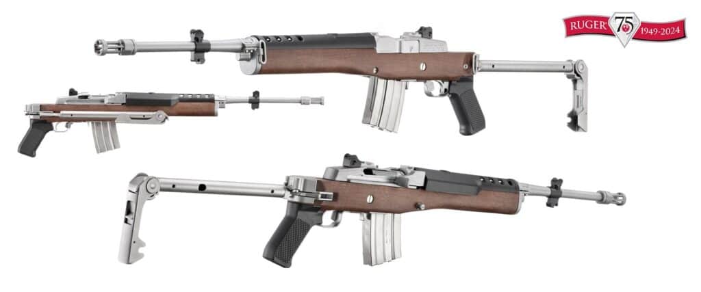 All I Want For Christmas is a Mini-14, A Mini-14, A Mini-14… Christmas or anytime, Ruger’s latest Mini-14 with Side-Folding Stock just wreaks of fun 5.56mm shooting! Reminiscent of classic side-folding Mini-14 rifles originally produced in the mid-1970s. The walnut stock features a stainless side-folder made from original Ruger casting tooling and an injection molded polymer pistol grip. The threaded 18.5-inch matte stainless steel barrel is fitted with a factory-installed 1/2"-28 flash suppressor.