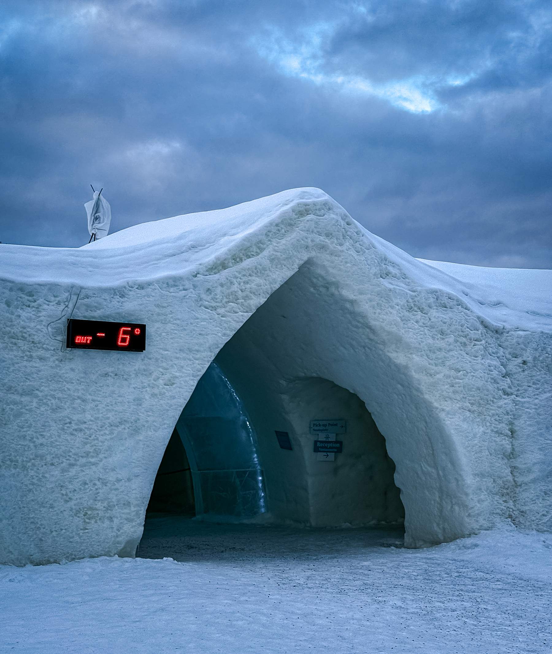 If Santa Claus had a speakeasy, this would be it. Just outside Rovaniemi, the official hometown of Santa Claus, sits the Arctic SnowHotel, an icy fortress carved fresh each year from snow and crystal-clear river ice.