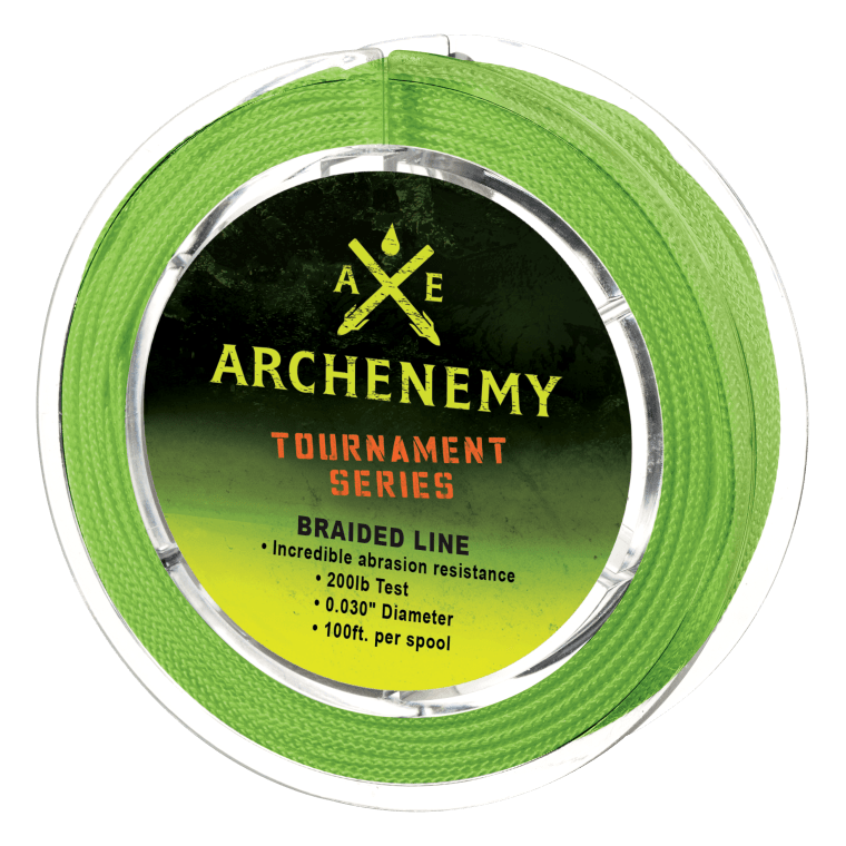 You can use regular fishing line on your bowfishing rig, but you’ll likely be more satisfied with a purpose-made line for the job. Very heavy braided lines are the most popular, since you don’t have to worry about fish seeing your line like you do in many fishing situations. The Archenemy Tournament Series Braided Bowfishing Line from Cabela’s fits the bill nicely. At 200-pound test, the line is just .030-inch in diameter for improved arrow speed and less drag. Plus, the high-visibility green color makes it easy to track your arrow in the water.