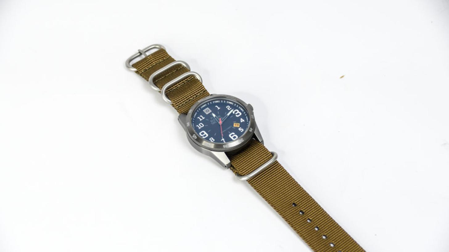 Inspired by military watches worn by forces around the world, this watch is built to last, no matter where you find yourself. It’s water resistant to 330 feet and features a unidirectional ratcheting bezel. Phosphorescent hands keep civilian time on the main dial, with military time displayed on the inner dial. Perfect for active weekends or easy nights out, it rolls with a clean, classic military look you can wear every day.