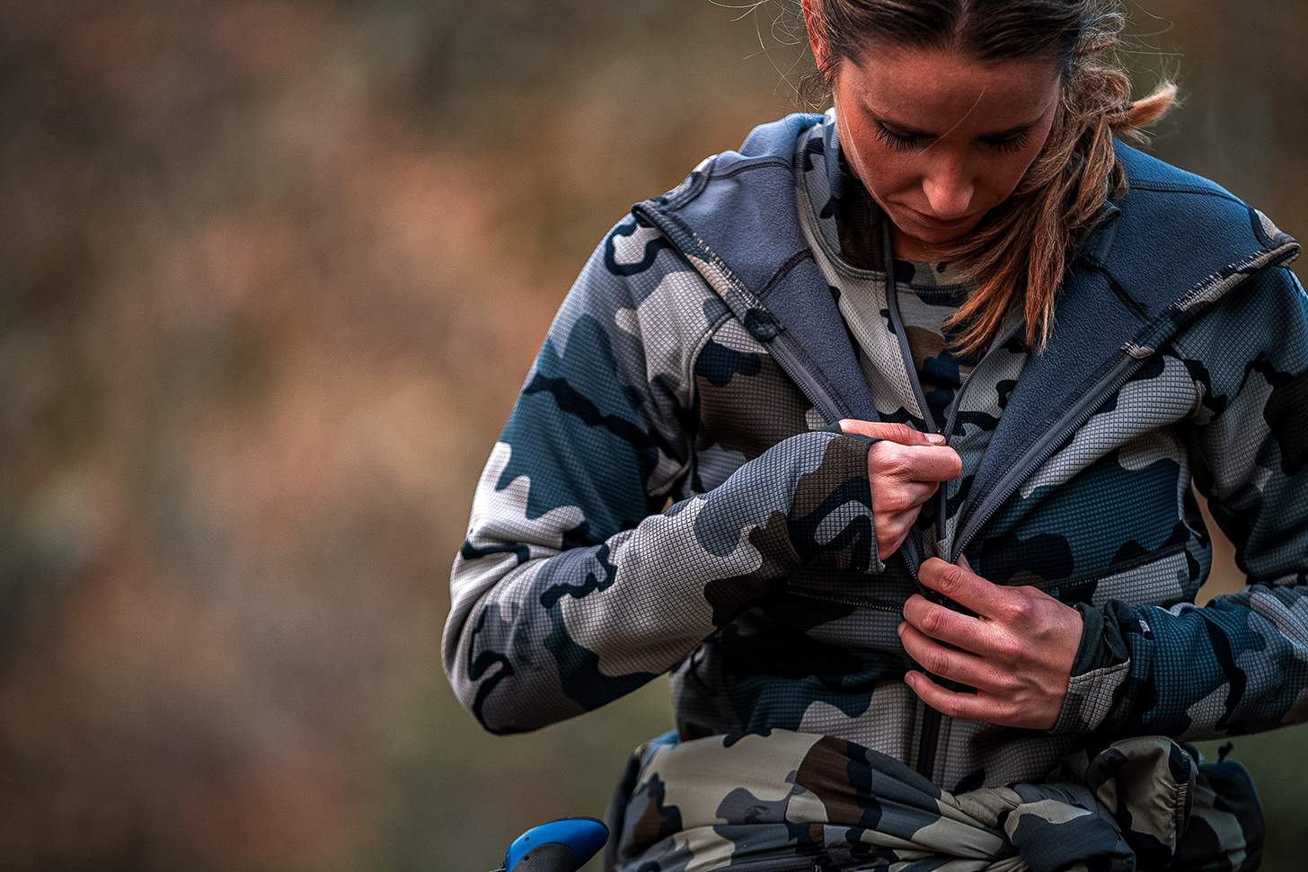 KUIU has some suggestions for making sure hunters’ layering systems fit and do their job. First, do layer an outer-layer fitted item over mid-layer fit item. A base layer, mid-layer fleece, mid-layer insulated jacket and an outer-layer fit rain jacket, all in the same size, will comfortably layer together. Also, be sure to upsize your soft-shell jackets if you plan to add multiple mid layers underneath.
