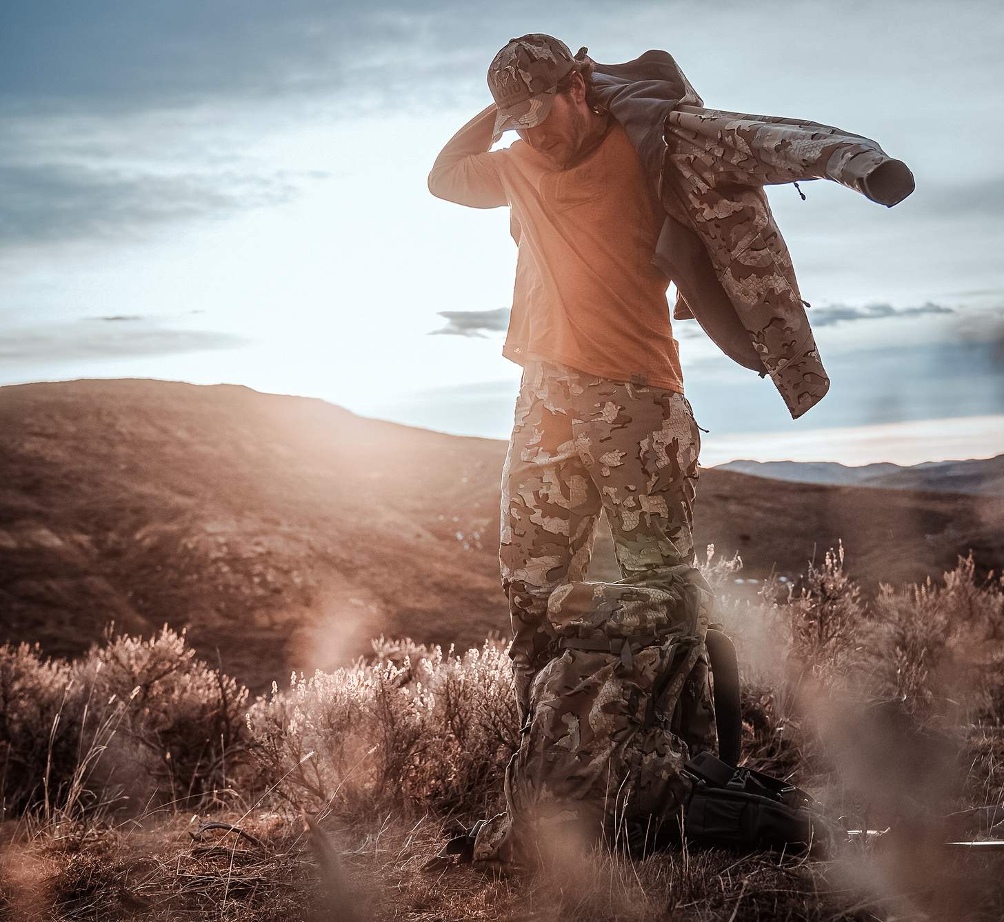 In hot conditions in the 70-degree range, a Gila LS Crew base layer paired with Tiburon outer layer pants might be just the ticket for staying cool and punching a tag. In temperatures from 45 to 70 degrees, things are still simple, with a Gila LS Crew, StrongFleece 190 and/or Guide PRO softshell hooded jacket on top, with the outer layer Attack Pants on the bottom.