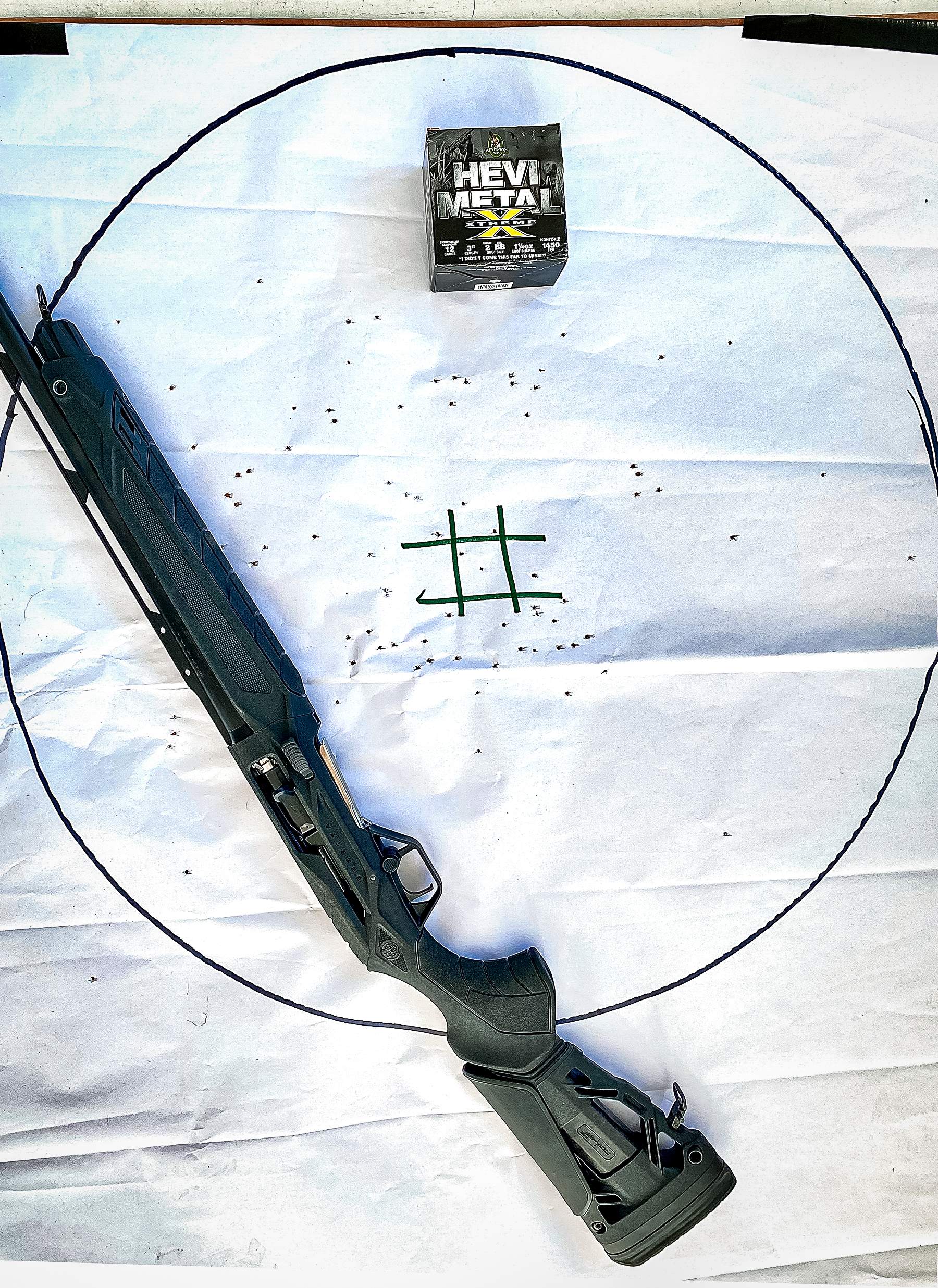 Using Beretta’s new AX800 Suprema, I ran the HEVI-Hitter 4/4 shells, as well as two options in the HEVI-Metal Xtreme line. All shells were 3-inch loads.
