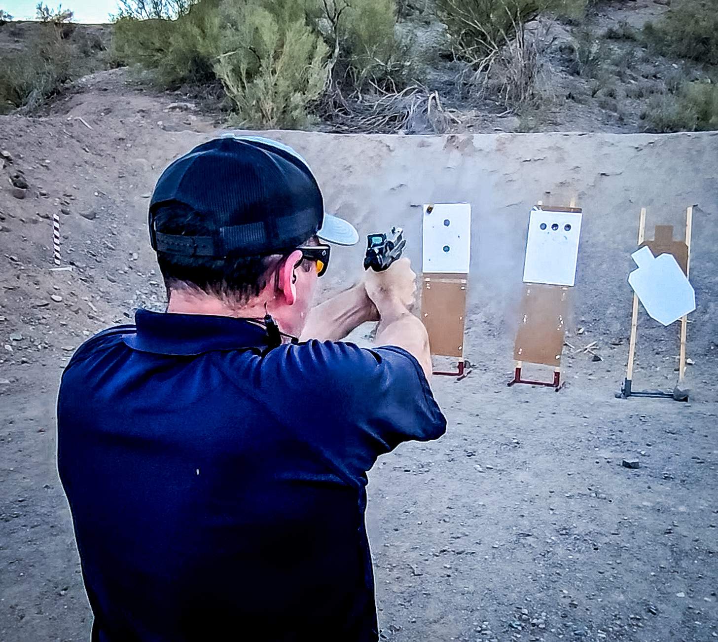 For me, range time always begins with slow precision fire. This gives a new gun a chance to break in if needed, and my breathing and heart rate are at normal pace, so I don’t need to spend time relaxing first. I test full-size guns like this at 25 yards. That distance does a great job of separating the men from the boys. I won’t mention any names, but at this distance, a 4-inch group for the most common law enforcement pistol in the U.S. is about what you can expect if the gun is benched and using quality ammo.