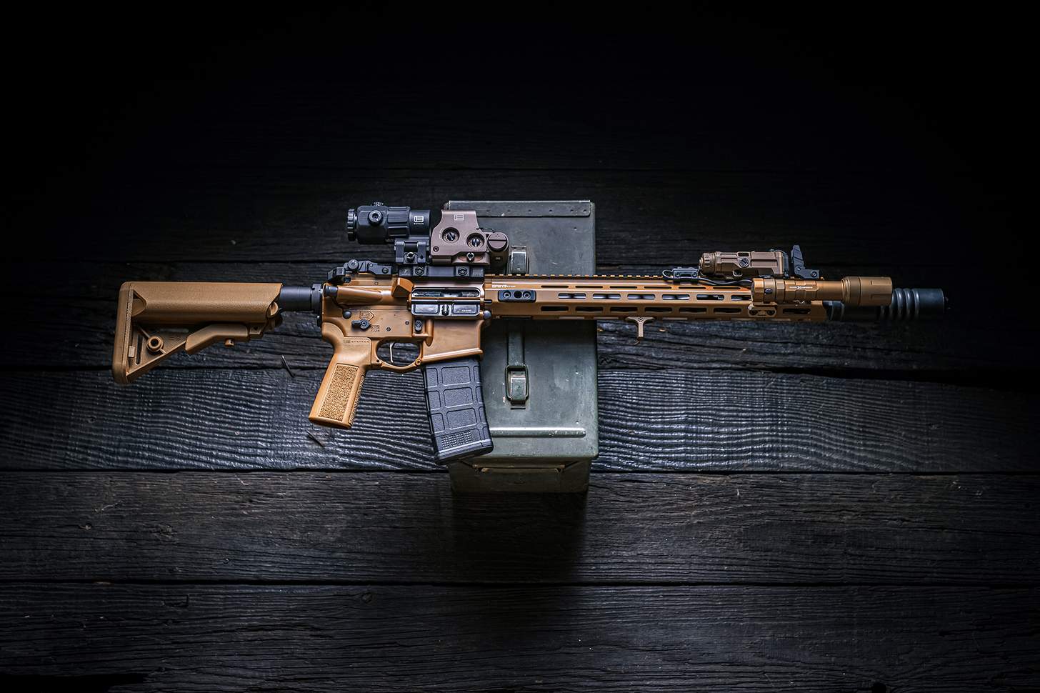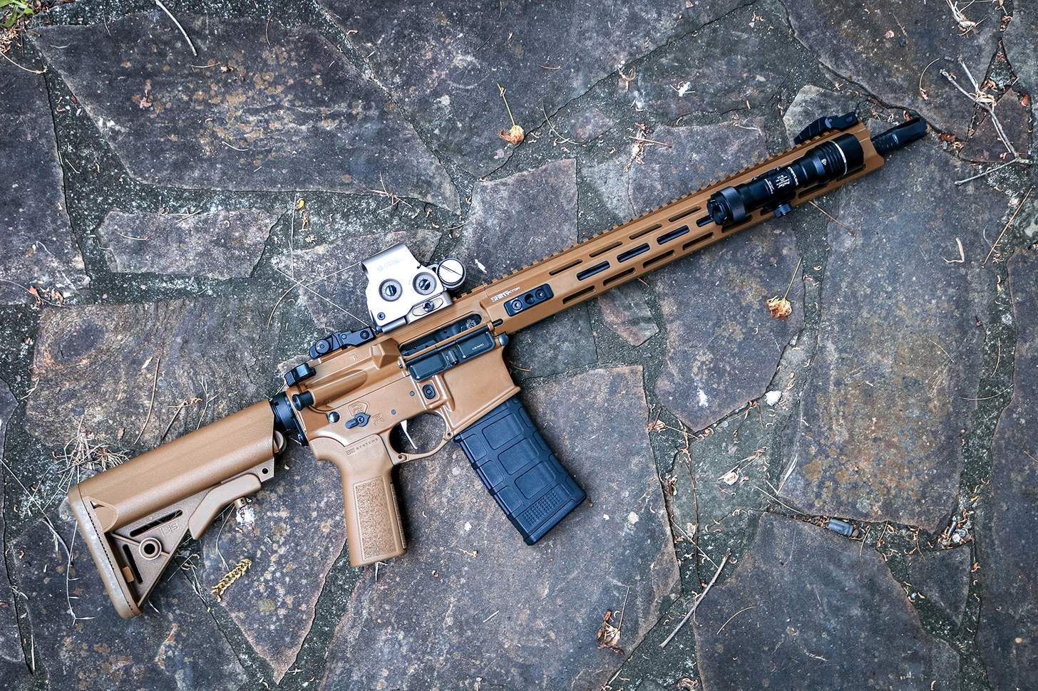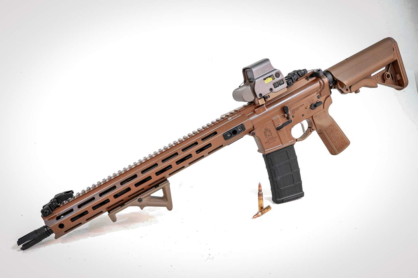 A gun this awesome deserves some top-flight accessories. That includes an EOTECH EXP-3 Holosight also in flat dark earth. This was the same optic that the Navy SEALs used to kill Osama bin Laden. I can think of no higher accolade.