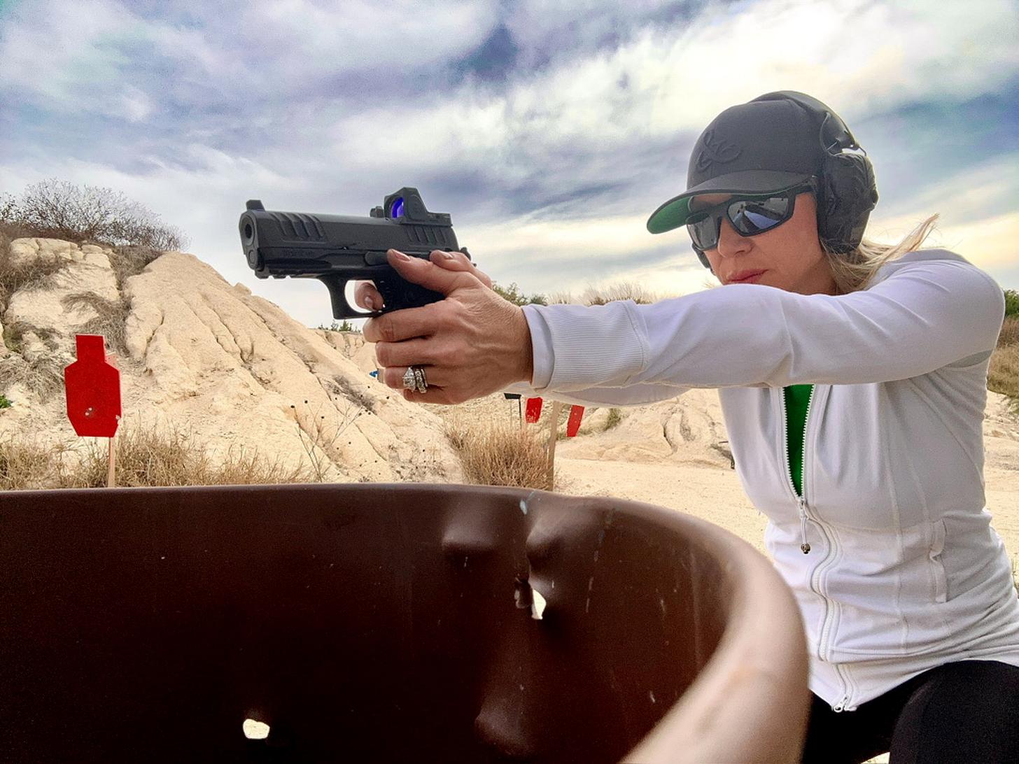 This time I had mounted a Trijicon RMR Type 2 Reflex Sight, which was perfect for a course where I was challenging my toughest competitor: myself. I was immediately impressed by how easily I could acquire the bright green dot. It stood out against the Texas sky and made target transitions feel effortless, even in bright sunlight.