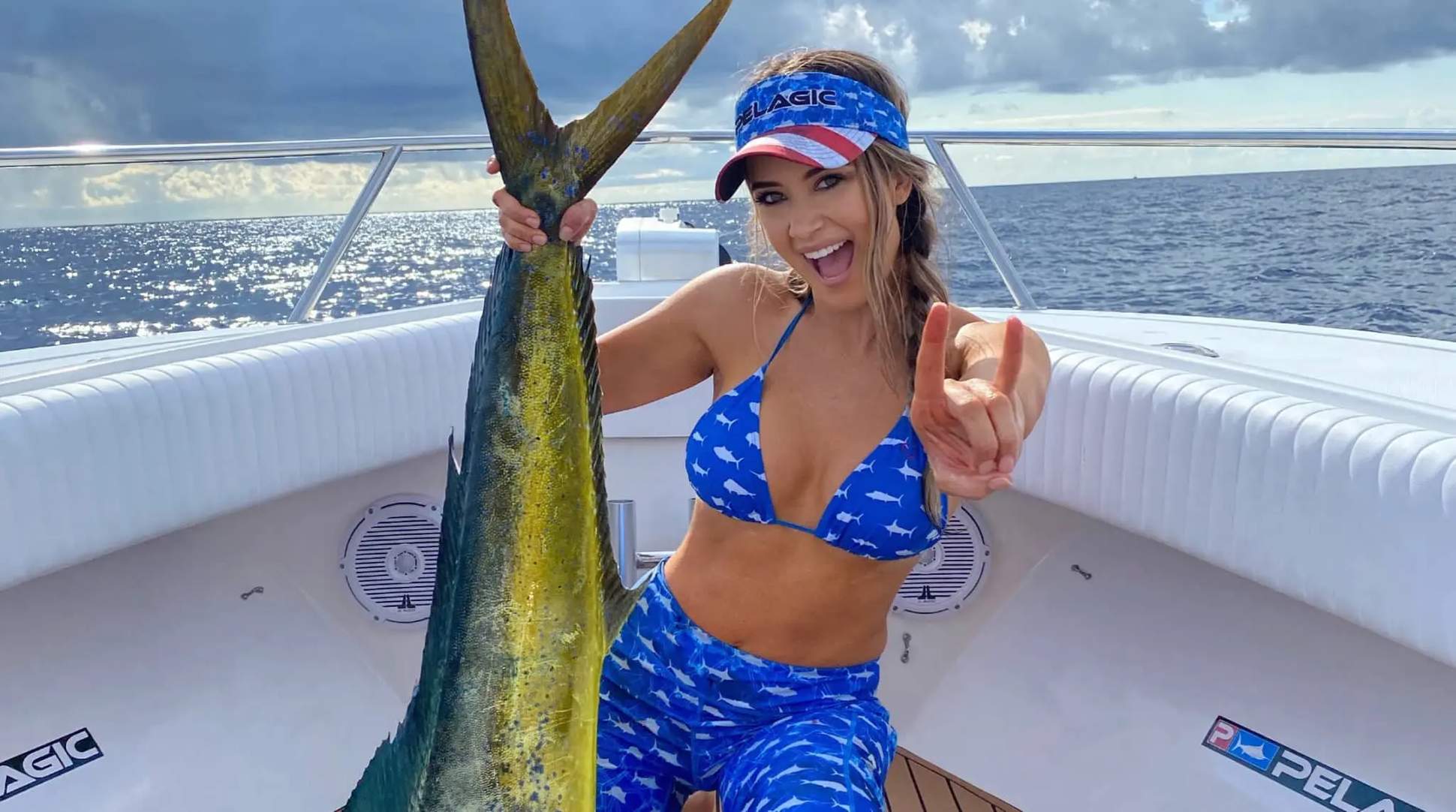 Once I really got into fishing, and we were going out on the boat every weekend, I used to wear regular leggings and old tee shirts, which weren’t great. My boyfriend got me my first pair of leggings, and the fabrics were amazing. I started buying a lot of their product and spending a lot of money. I would post pictures wearing their gear just trying to get noticed and get my face out there. Someone reached out to me, and I was so excited. I model their products, and I get to go out and fish also. They sent us to Costa Rica for a week, and we got to fish in a tournament. I caught my personal best Dorado and my first Pacific sailfish.